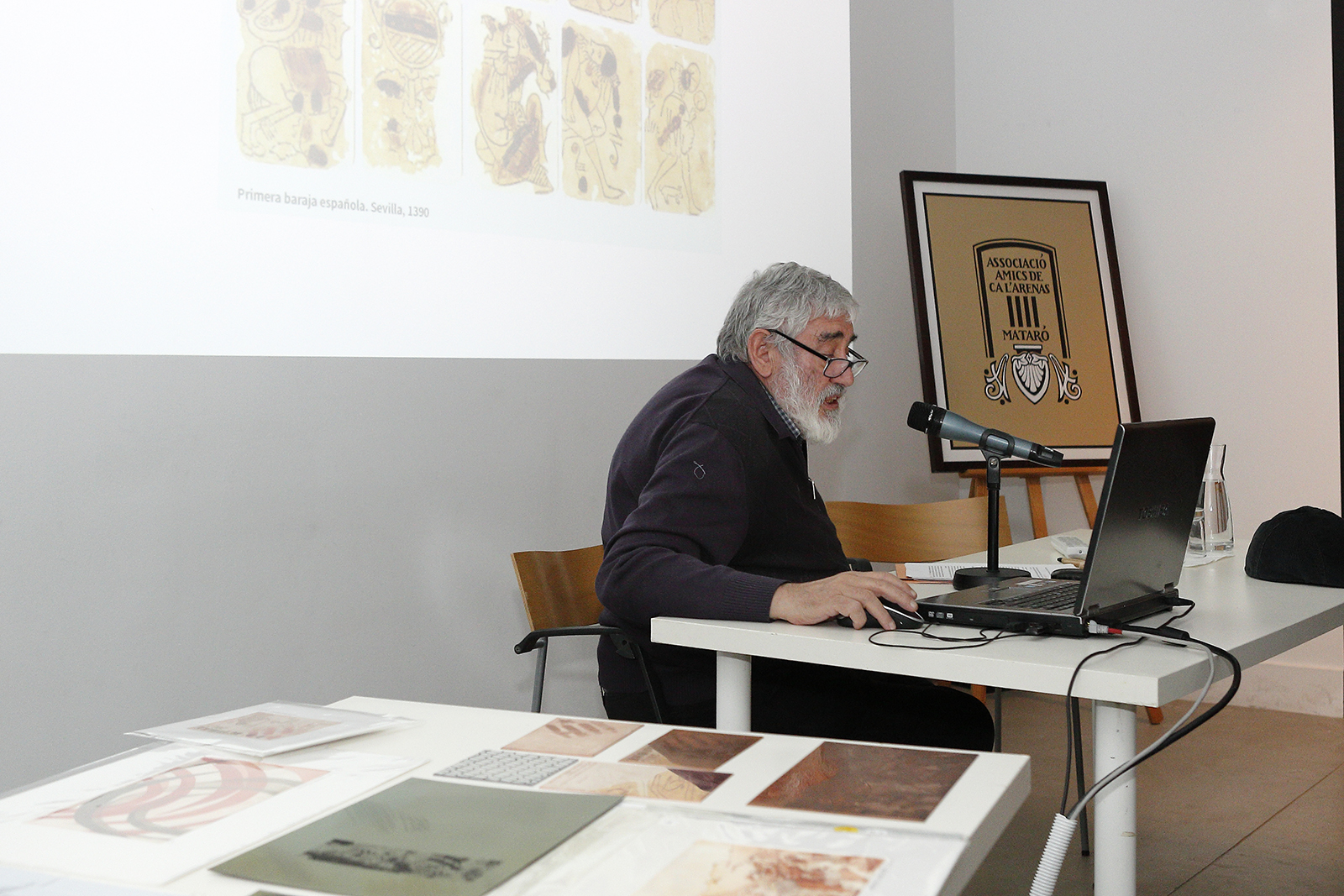 Eduard Huertos ens dibuixa un detallat recorregut a ma alçada per l’història del gravat. Una xerrada ordenada com un veritable arbre genealògic de l’evolució d’aquest noble ofici. La passió per la tècnica i la fusió de sentiments són i han marcat la vida d’aquest home entregat a la lluita personal i de la comunitat. Sovint ens transporta a un món quasi màgic on els que coneixem tant l’ofici com el seu tarannà fruïm embadalits. Gràcies per la teva tasca i generositat.I a l’ Associació d’amics de Cal Arenas de Mataró per fer-ho possible.